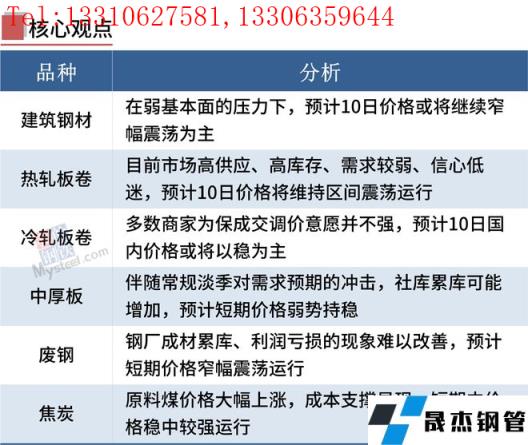 建筑厚壁無縫鋼管:6月9日,全國31個(gè)主要城市20mm三級抗震螺紋鋼均價(jià)4838元/噸,較上個(gè)交易日漲3元/噸。產(chǎn)業(yè)數(shù)據(jù)方面,本周螺紋鋼產(chǎn)量小幅增加,庫存方面,雖然廠庫下降,但社庫出現(xiàn)回升,同時(shí)在雨季影響下,需求端整體低迷。短期來看,目前市場需求恢復(fù)狀況不及預(yù)期,南方汛期疊加高考日影響,下游需求整體低迷,且投機(jī)性需求較差。因此短期在弱基本面的壓力下,預(yù)計(jì)10日國內(nèi)建筑厚壁無縫鋼管價(jià)格或?qū)⒗^續(xù)窄幅震蕩為主。