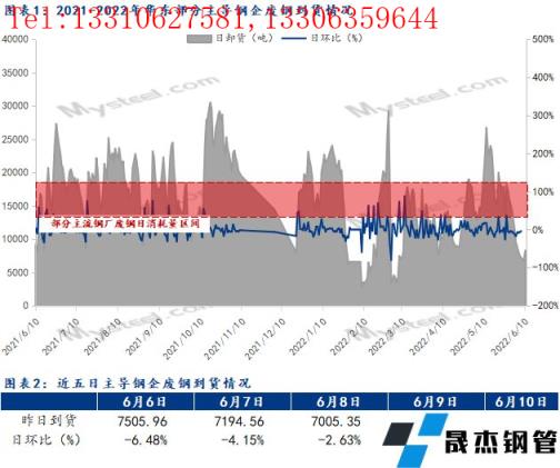截止發(fā)稿,6月10日統(tǒng)計華東主導鋼企廢鋼到貨昨卸8304.23噸,較前一日增加19.39%。日均到貨普遍低于日耗。結(jié)合上述消耗情況,可見多數(shù)無縫厚壁鋼管廠家暫未受此消息影響而計劃降低庫存,反而部分無縫厚壁鋼管廠家?guī)齑嫫?,有補庫需求。