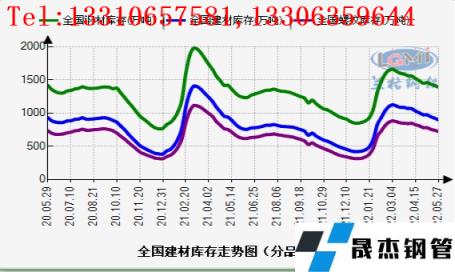 截止5月27日,全國(guó)無縫鋼管 厚壁鋼管社會(huì)庫存連續(xù)3周下降:據(jù)云商平臺(tái)監(jiān)測(cè)數(shù)據(jù)顯示,5月27日,全國(guó)無縫鋼管 厚壁鋼管社會(huì)庫存指數(shù)為151.1點(diǎn),比上月下降3.82%,比去年同期上升10.99%;其中建材社會(huì)庫存指數(shù)為217.9點(diǎn),比上月下降8.02%,比去年同期上升14.22%;螺紋鋼社會(huì)庫存量為721.37萬噸,比上月下降7.75%,比去年同期上升13.87%。國(guó)內(nèi)建材庫存保持去庫,但同比去年還是明顯偏高。