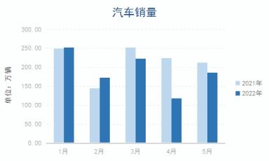 5月,受利好消息影響,汽車產(chǎn)銷明顯增長。據(jù)中汽協(xié)數(shù)據(jù),5月,汽車產(chǎn)銷分別完成192.6萬輛和186.2萬輛,環(huán)比分別增長59.7%和57.6%,同比分別下降5.7%和12.6%。1-4月,汽車產(chǎn)銷分別完成961.8萬輛和955.5萬輛,同比分別下降9.6%和12.2%。