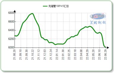 據(jù)云商平臺(tái)監(jiān)測(cè)數(shù)據(jù)顯示:截至6月29日,國(guó)內(nèi)十大主導(dǎo)城市108*4.5無(wú)縫管市場(chǎng)均價(jià)6010元,較上月同期跌346元。