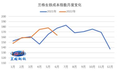 圖1 生鐵成本指數(shù)走勢圖