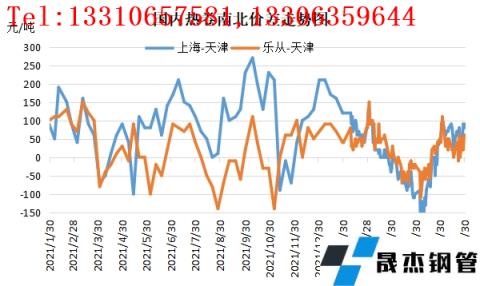 另外,受需求低迷拖累熱卷市場南北價格難以拉開,資源多集中在當?shù)貐^(qū)域消化,難以實現(xiàn)南北流通,也在一定程度上加劇了市場購銷難度,側面反饋了終端需求的低迷。特別是3月下旬到5月中旬的一段時間,熱卷北方價格持續(xù)高于華南以及華東成交。據(jù)云商平臺監(jiān)測數(shù)據(jù)顯示,上半年南北區(qū)域價差持續(xù)低位,多數(shù)時間不足100元區(qū)間。截止到6月底,上海-天津熱卷區(qū)域價差為80元,樂從-天津價差為60元。而天津到華東海運費120-130元,天津到華南運費為180-190元。