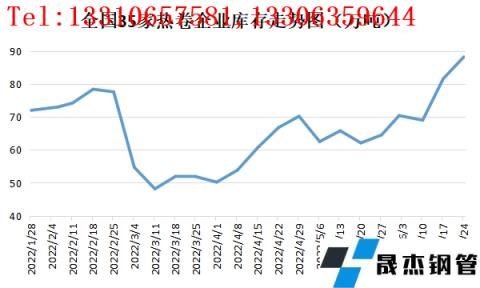 無縫鋼管廠家?guī)齑娣矫嫣幱谙鄬Ω呶?,截止?月24日網(wǎng)統(tǒng)計國內35家熱卷企業(yè)無縫鋼管廠家熱卷廠庫為88.21萬噸,創(chuàng)上半年以來新高。主要原因在于進入6月份之后受成材跌勢加劇利空無縫鋼管廠家虧損情況增多,市場不斷傳出無縫鋼管廠家即將減產消息,但減產后期被證偽,熱卷產量依然處于高位水平;而需求端雖華東區(qū)域疫情解封,但需求依然難有實質性利好改觀的情況,無縫鋼管廠家?guī)齑娉尸F(xiàn)持續(xù)累庫狀態(tài)。