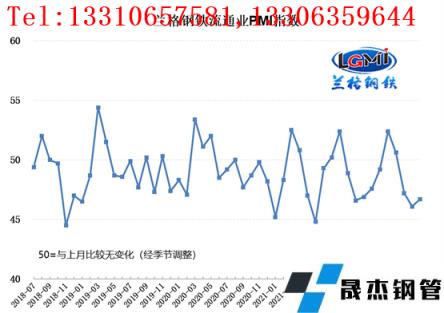 云商平臺(tái)統(tǒng)計(jì)發(fā)布的2022年7月份厚壁無(wú)縫鋼管流通業(yè)PMI總指數(shù)為46.7%,比上月回升0.6個(gè)百分點(diǎn),在收縮區(qū)間內(nèi)低位回升。從分類指數(shù)看,構(gòu)成厚壁無(wú)縫鋼管流通業(yè)