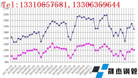 圖1 國內(nèi)建筑厚壁鋼管均價走勢圖