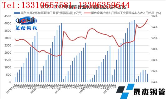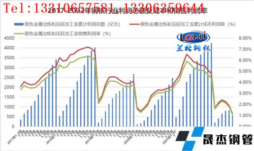 圖3 2017-2022年厚壁無縫鋼管行業(yè)利潤(rùn)總額及成本和銷售利潤(rùn)率
