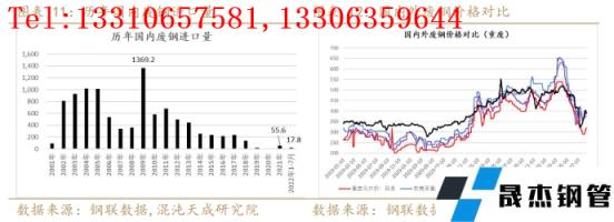 綜合而言,廢鋼供應(yīng)的多寡其實與厚壁鋼管的需求息息相關(guān),無論折舊廢鋼、加工廢鋼還是自產(chǎn)廢鋼都與國內(nèi)厚壁鋼管的消費有直接的關(guān)聯(lián),而進(jìn)口廢鋼的增減在一定程度上也可以反映國外厚壁鋼管消費的好壞,所以廢鋼的供應(yīng)量實際上也是一個反映需求的指標(biāo),這從廢鋼供應(yīng)基地庫存與五大材表需的相關(guān)性也可得到佐證。